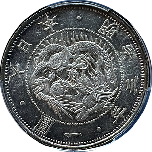 هذه عملة فضية قديمة من فئة ين واحد من عصر ميجي 3 (عملة فضية قديمة من فئة ين واحد)، وتأتي في علبة خاصة من PCGS، وهي وكالة أمريكية لتصنيف العملات. تُصنّف PCGS العملات على مقياس من 70 نقطة، وقد حصلت هذه العملة الفضية على 63 نقطة.